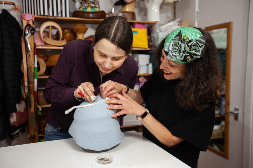 Tras formarme con la célebre Rose Cory (sombrerera de la Reina Madre) y trabajar 10 años en Londres, abro las puertas de mi estudio en el centro de Madrid para compartir los secretos del oficio.