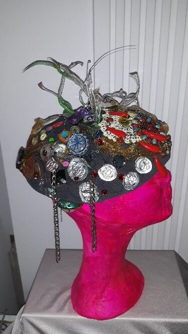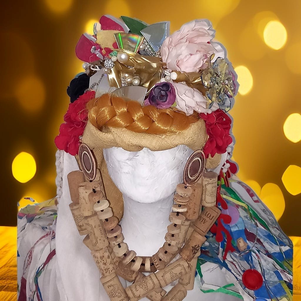Guided by the wellknown greek creators Stelios Mavromatis and Stelios Koupegos, Nikoleta finds expression in painting, assemblage, and collage always reusing-rethinking-upcycling materials.Nikoleta creates upcycled costumes for the famous environmental event in Thessaloniki with wearable art out of disgarded materials. She is member of the Association of Visual Artists of Northern Greece and the Spanish Hat Association, where her passion for hats transforms forgotten, broken, or faded hats, parts and pieces into one-of-a-kind wearable art.