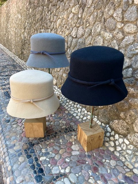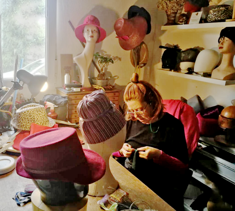 Apasionada por el oficio, Cristina empieza a confeccionar sombreros en su taller de Sitges, donde combina ambos profesiones, el figurinismo y la sombrerería. Allí recibe a sus clientes con cita previa.